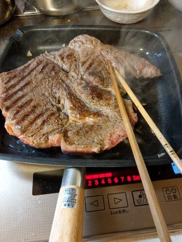 肉を買った。 ライフで600グラム1,400円程度の安い赤身のオージービーフ。 焼いた。 グリルパンって焼け色がついて肉が美味しそうに焼けるもんです。 噛みごたえがあって肉の味がする。むしゃむしゃ一心不乱に食べる。が大きいので焼いて食べても食べても食…